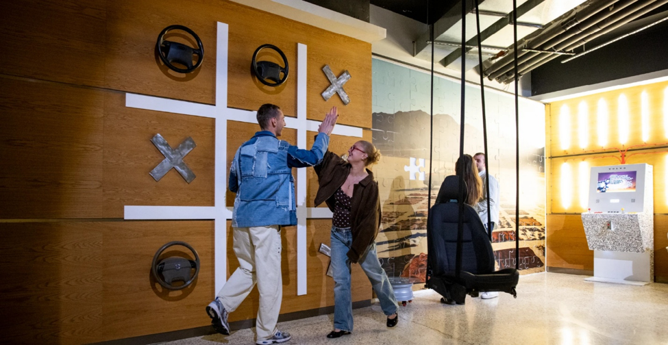 ლაუნჯში განთავსებულია ინტერაქტიური ინსტალაციები, თამაშები და ის დიზაინერული ელემენტები, რომლებიც კომფორტთან ერთად შემოქმედებით ენერგიასა და ისეთივე უსაფრთხო და მყუდრო გარემოს ქმნის, როგორიც თავად „ვოლვოს“ ფილოსოფიაა.
